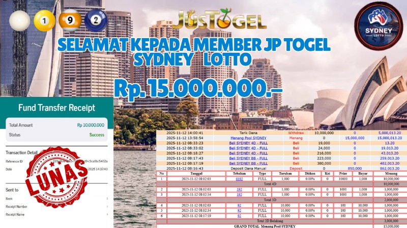 SELAMAT KEPADA MEMBER JP TOGEL SYDNEY LOTTO TOTAL RP. 15.000.000.- LUNAS