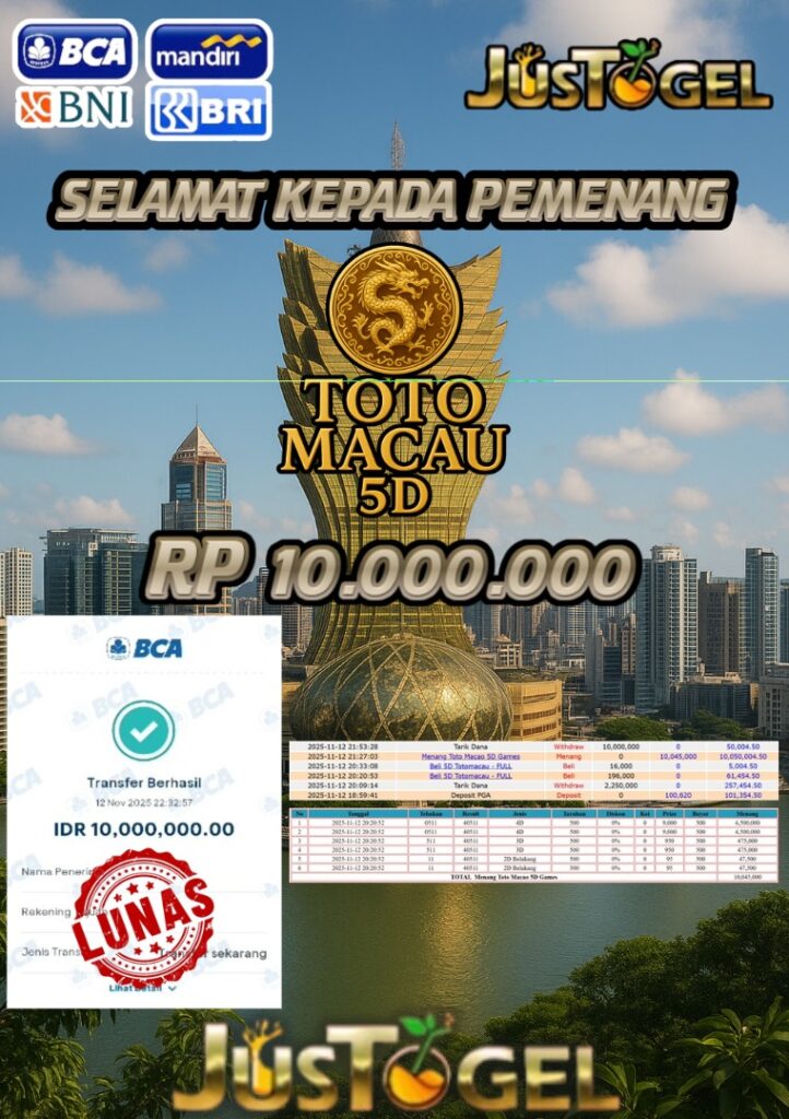 SELAMAT KEPADA MEMBER JP TOGEL TOTO MACAU 5D TOTAL Rp. 10.000.000.- LUNAS
